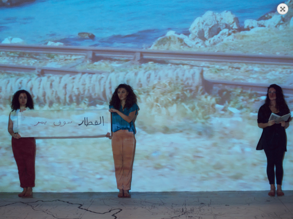 In Nothing to Declare, an old map of the Arab world shows border-crossing train tracks spanning the region. Today, the non-operational Lebanese Railway appears as a rupture. Dictaphone Group describe their project as follows: “We decided to take a journey along the abandoned train tracks of Lebanon. Our starting point was a derelict station in Beirut, and continued as each one of us set off on a different trip following one of the three train tracks. Our travels revealed past and present uses of these tracks and the stations that dotted them. Some were abandoned. Others were turned into makeshift housing. Some had the markings of being converted into military bases and torture chambers.