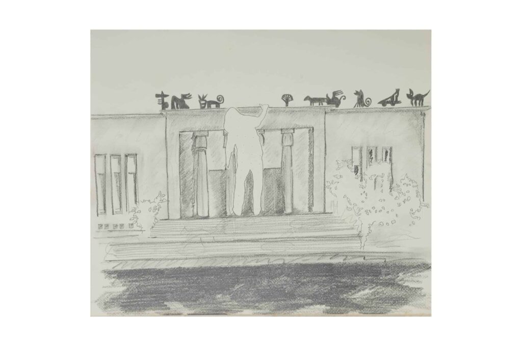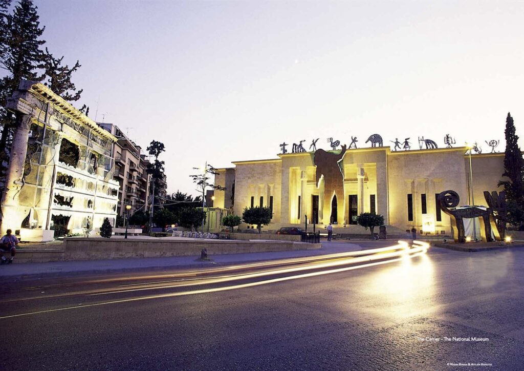 A giant 15m high copper-clad sculpture was installed in front of the locked and bolted National Museum accompanied by the fifteen human-scale sculptures that were previously at Sursock Museum.